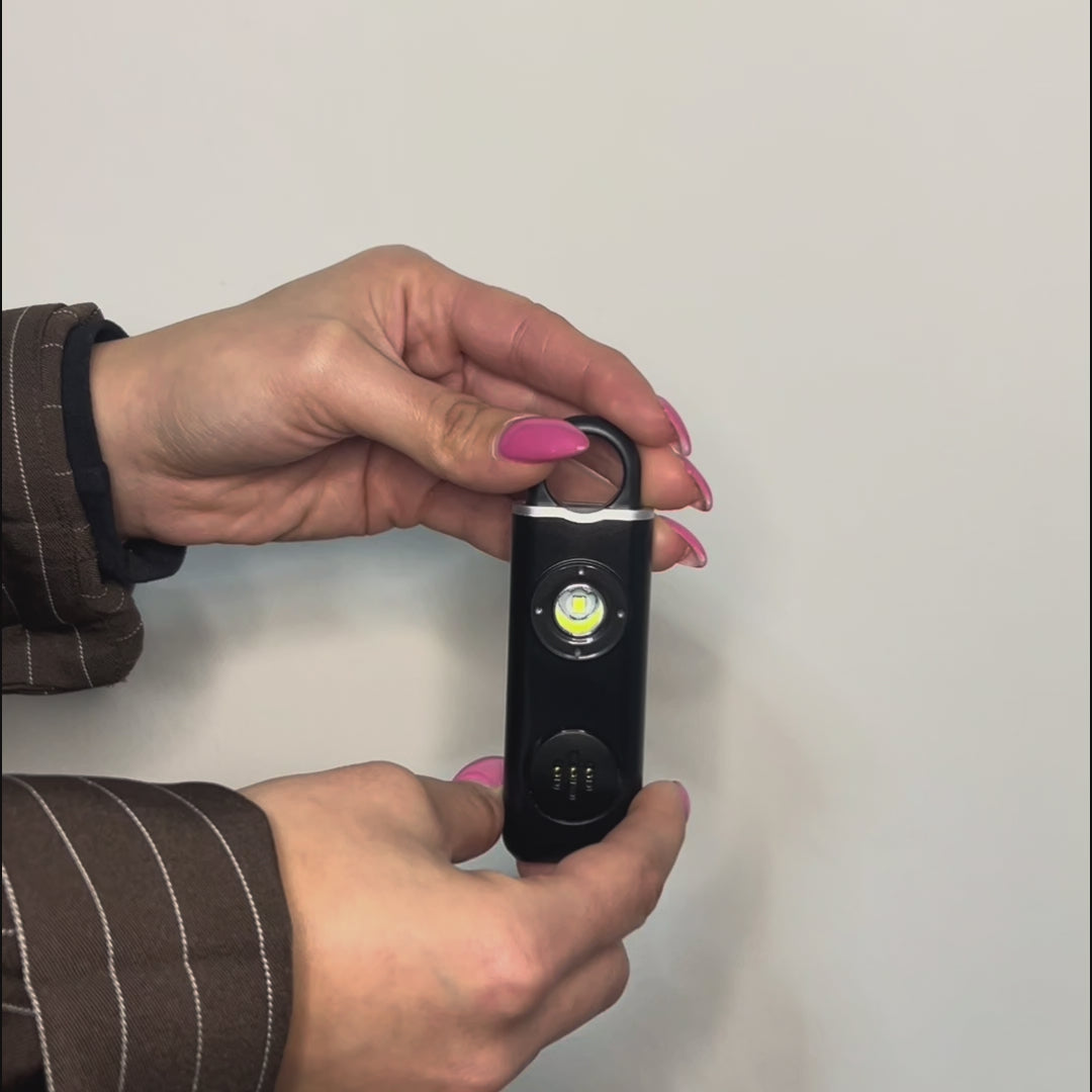 Un allarme tascabile da 130dB, udibile fino a 300 metri, progettato per mettere in fuga chi ti minaccia e attirare subito aiuto.